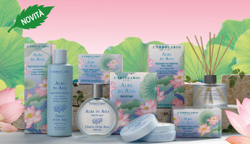 ischiude la sua corolla alle prime luci del mattino, stendendo i suoi petali sulla superficie dell’acqua in perfetta armonia ed equilibrio: è il Fiore di Loto, simbolo di grazia, leggiadria e purezza nelle culture orientali. A questo fiore meraviglioso si ispira la linea Alba in Asia: un profumo dalle note fiorite e trasparenti, trattamenti di bellezza per il corpo con ingredienti cosmetici provenienti dal Fiore di Loto e dal Riso, limpide fragranze per la casa e gli ambienti.