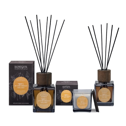 cuoiato ed è frutto dell’unione dalle note gourmand di Vaniglia, Caramello salato e di quelle più resinose ed animaliche di Benzoino e Ambra.