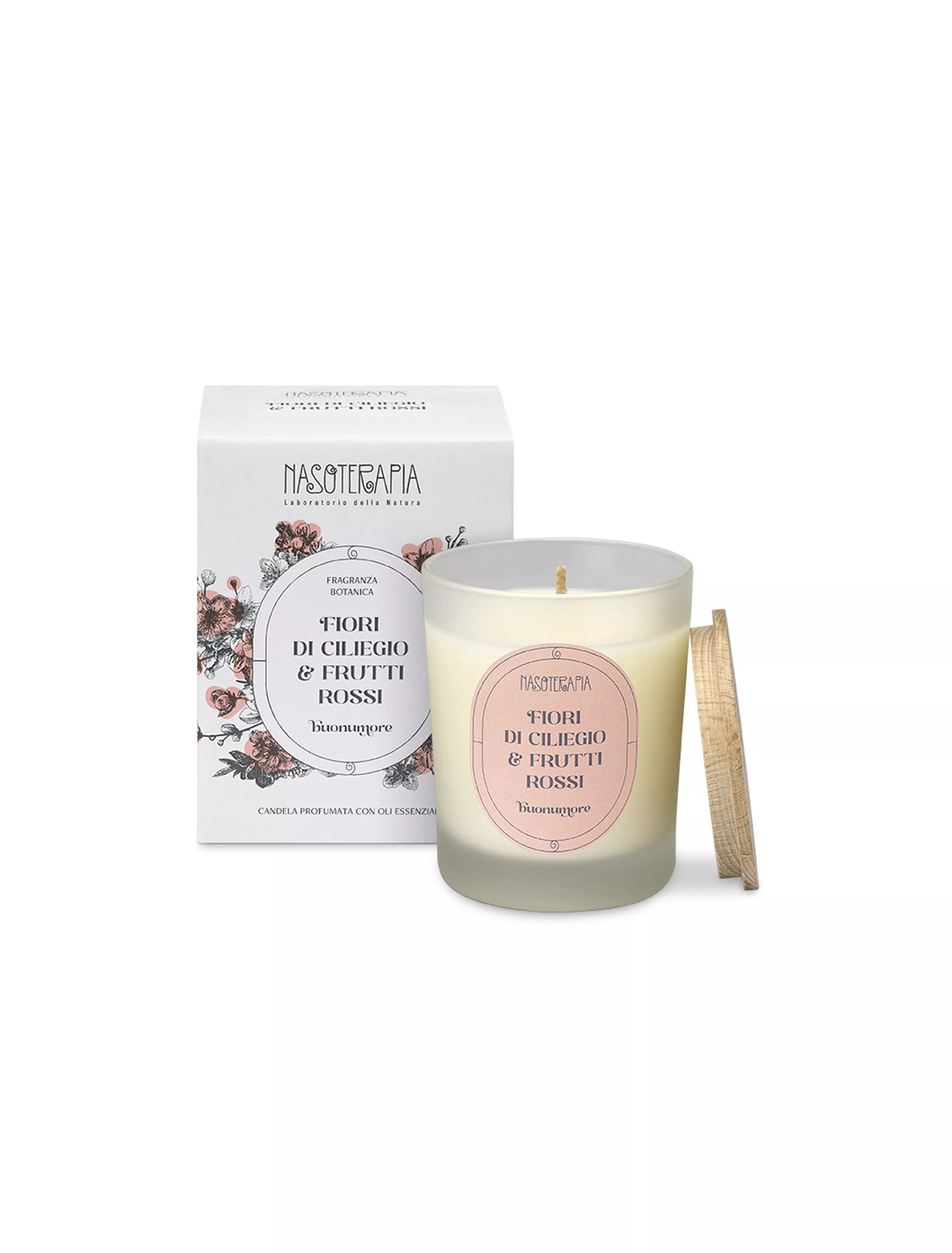 e Mandorle dolci. Il fondo incornicia le atmosfere olfattive della fragranza con le note delicate del Legno di Rosa.