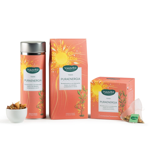 Echinacea* (Echinacea purpurea (L.) Moench) parti aeree e radici, Rosa canina* (Rosa canina L.) cinorroidi, Ibisco* (Hibiscus sabdariffa L.) fiori, Sambuco* (Sambucus nigra L.) fiori, Ribes nero* (Ribes nigrum L.) foglie, Stevia* (Stevia rebaudiana Bertoni) foglie.